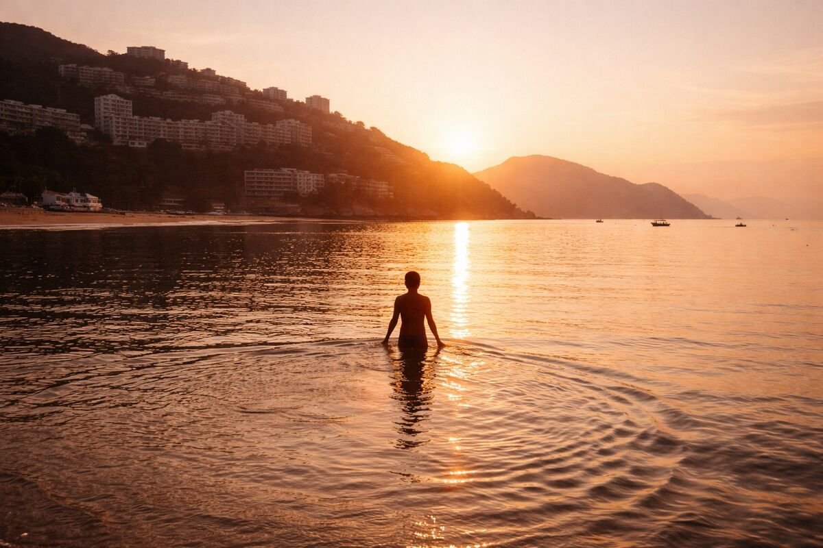 Repulse Bay as the sky turns gold. Deep Water Bay before the city wakes. The sea as sanctuary.
