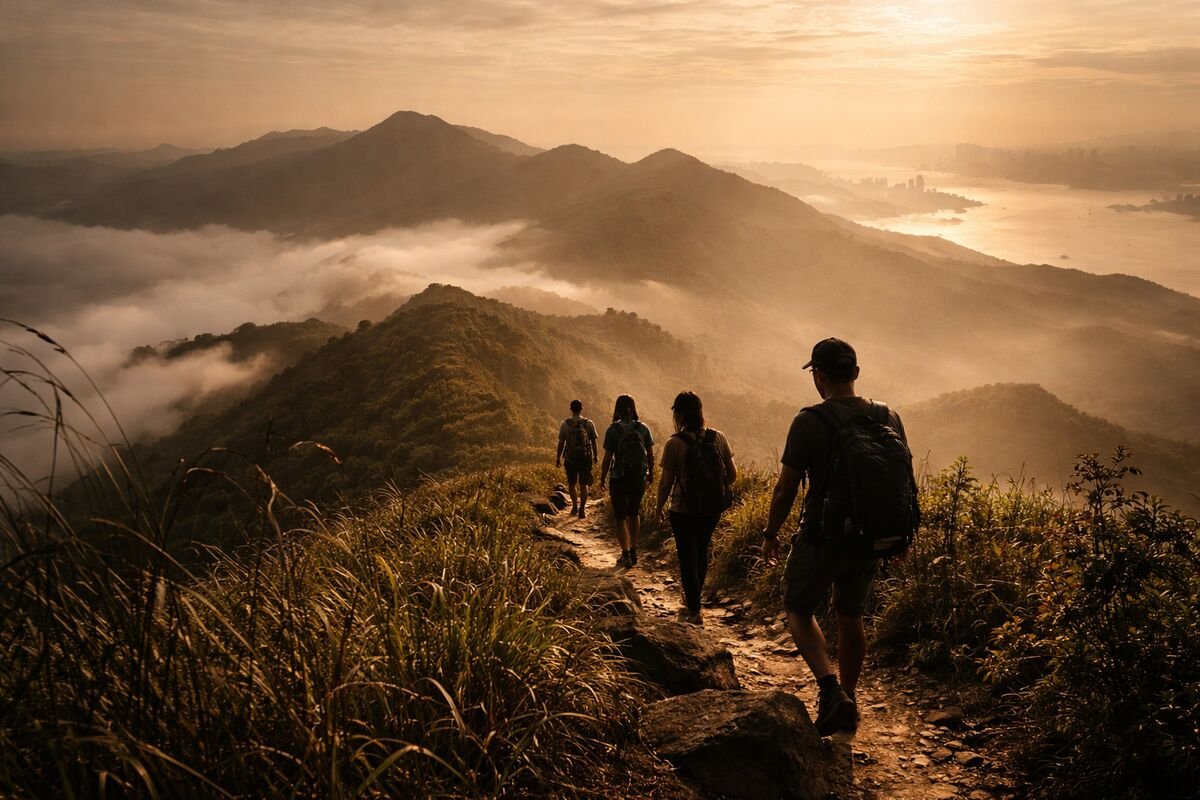 黎明嘅龍脊。日落嘅獅子山。霧中嘅大嶼山。每條山徑都變成朝聖。